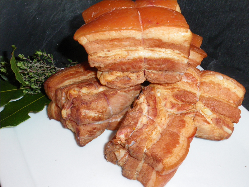 Toute l’année : jambon blanc, rillettes de porc, terrines variées, fromage de tête, rillauds, lard rôti, boudins noirs, boudins blancs, saucisses, pâté en croûte, pieds et oreilles cuites, jambon fumé, viande de porc crue…